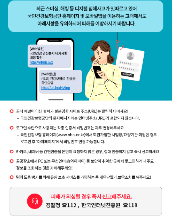 • 피싱 문자 피해 주의 필요